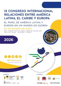 The European and Ibero-American Academy of Yuste Foundation, the University of Extremadura (UEx), and the Centre for Research on Ibero-American Studies at Rey Juan Carlos University (CEIB-URJC) announce the 9TH INTERNATIONAL CONGRESS ON RELATIONS BETWEEN LATIN AMERICA, THE CARIBBEAN AND EUROPE, entitled “THE ROLE OF LATIN AMERICA AND EUROPE IN A WORLD AT WAR”, which will be held in Guadalupe (Cáceres) on 25 March 2026.