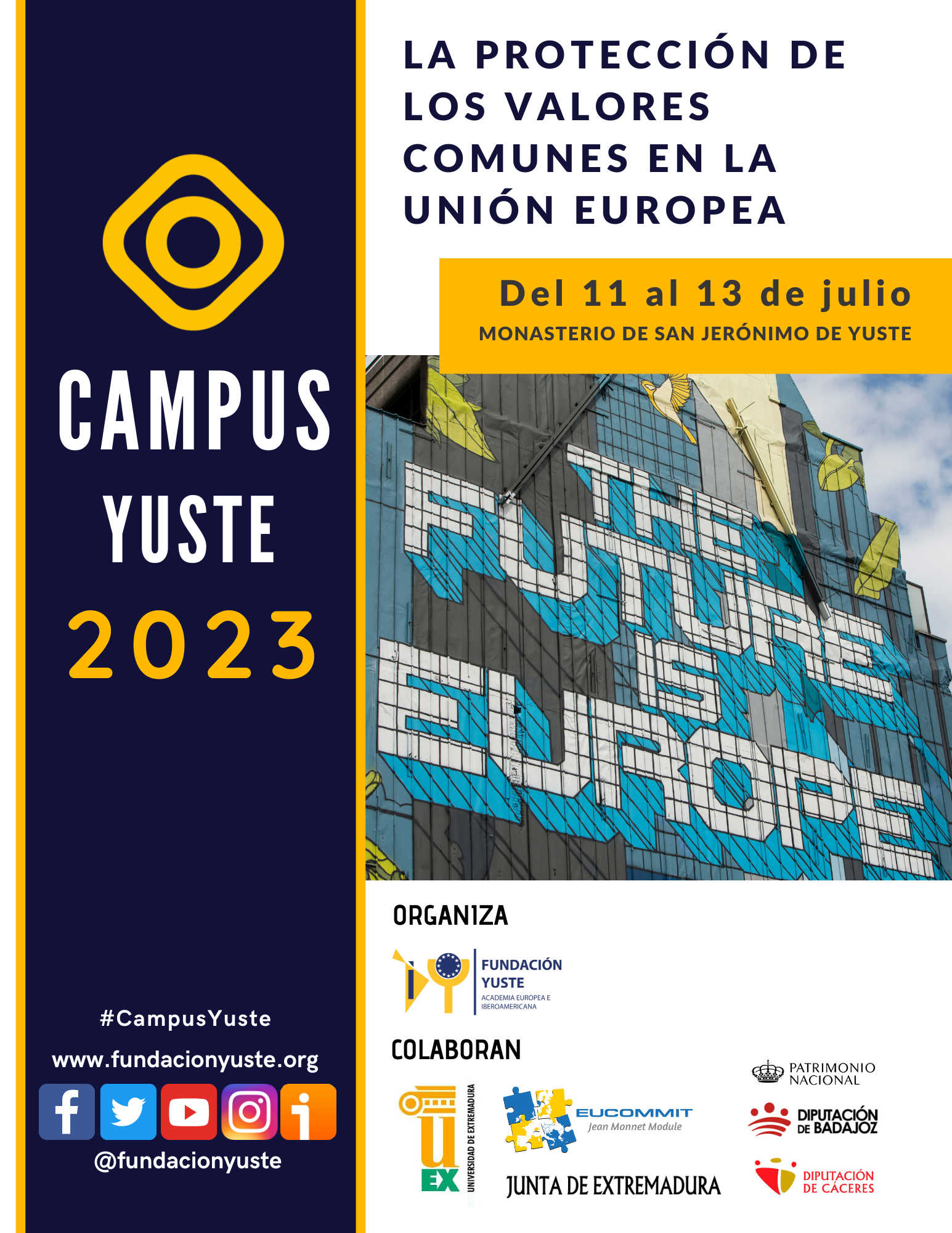 The course aims to create a forum for dialogue, reflection and debate between academia, political actors, stakeholders, students, professionals and society at large to improve knowledge of the common values of the EU, promote teaching excellence in the UEx, improving the quality of multidisciplinary vocational training and promoting the EU’s vision not only as an area of economic and political integration but also of culture, which shares the core values of democracy, the social rule of law and the separation of powers from authoritarian and illiberal regimes.